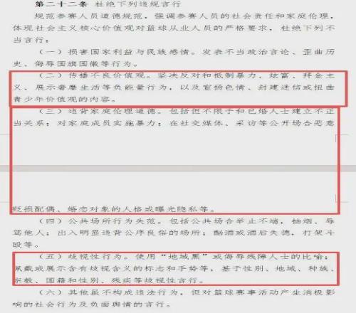 大家應該都還沒有忘記,前段時間某球員被他的前女友所爆出的各種猛料吧?什麽腳踏幾條船,私生活極其混亂等等,並且還進行了實名舉報。雖然目前還沒有看到處理結果,但是中國籃協此次專門出台約束參賽人員道德規範的措施,無疑是向某些球員敲響了警鍾,如果再造成不良影響,那就不可能不了了之了。
