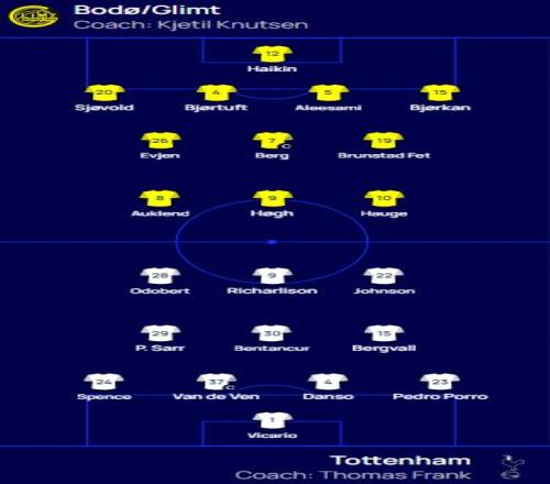 雷速體育10月1日宣 歐冠聯賽階段第二輪,博德閃耀主場迎戰熱刺。賽前兩隊首發陣容出爐。
