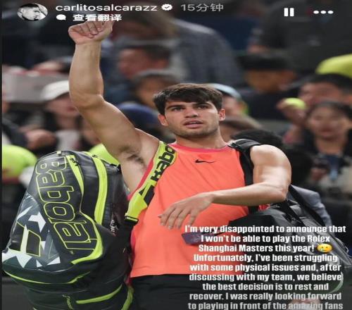 北京時間9月30日,西班牙網球名將阿爾卡拉斯更新社媒,表示因身體原因無法參加上海大師賽。