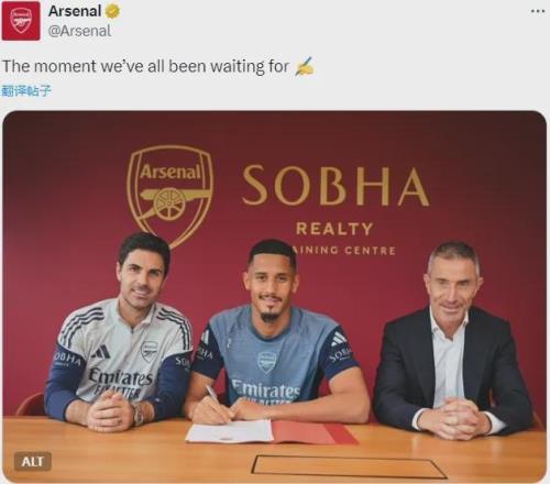 官方:阿森納宣布和薩利巴簽下了一份長期合同。