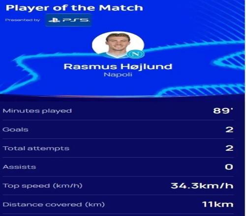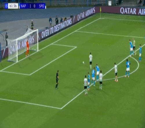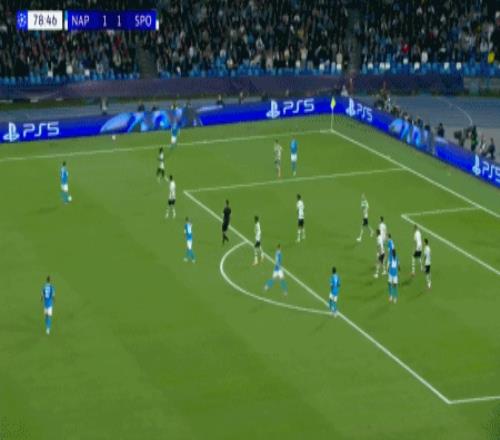 就此德布勞內在過掉兩人之後,霍伊倫德跑出了非常好的交叉位置,在與對方中後衛的對抗後,他充分發揮出了自己靈活和速度快的優勢,擺脫之後一腳低射打了對方門將一個小門兒成功的破網,就此那不勒斯1:0領先。