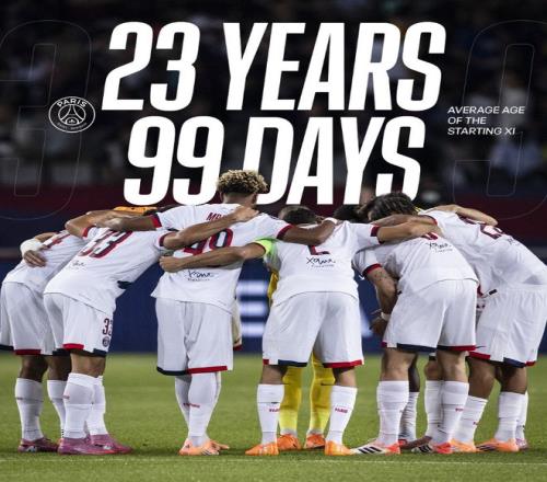 巴黎聖日耳曼今天的歐冠陣容也創下一個記錄,對陣巴塞羅那,大巴黎的這套首發陣容年齡均為23歲99天,是衛冕冠軍在歐冠比賽中首發陣容第二年輕的球隊。