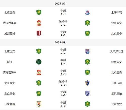 本賽季國安原本是半程第一,結果在關鍵戰中連續1比3不敵申花和0比2敗給成都蓉城。