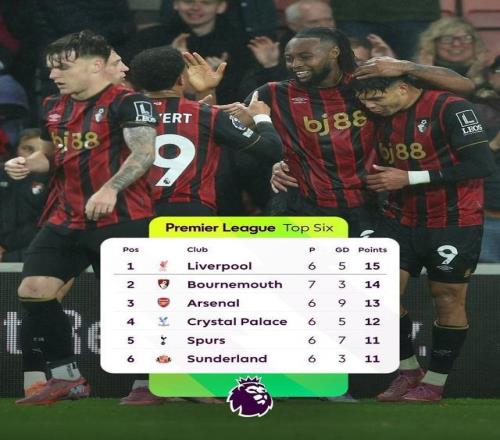 在首輪客場2-4不敵利物浦後,伯恩茅斯在接下來的六輪英超中取得四勝兩平的不敗戰績,在先賽一場的情況下,以14分僅次於衛冕冠軍利物浦位列積分榜次席。