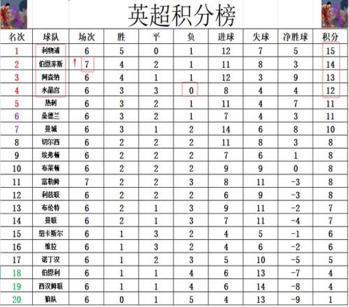 積分榜方麵,利物浦上輪5連勝被終止,不過他們仍然是位列榜首,領先阿森納2分。伯恩茅斯今天逆轉絕殺富勒姆後,近6輪4勝2平保持不敗,先賽的情況下超過阿森納1分升至第2。輸球的富勒姆還是多曼聯1分,排在第11。