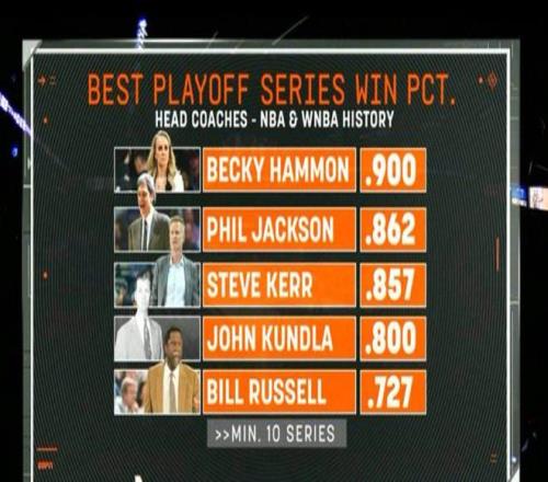 其中,王牌現任主教練貝基·哈蒙以90%的勝率位居榜首。 其餘四位分別是: