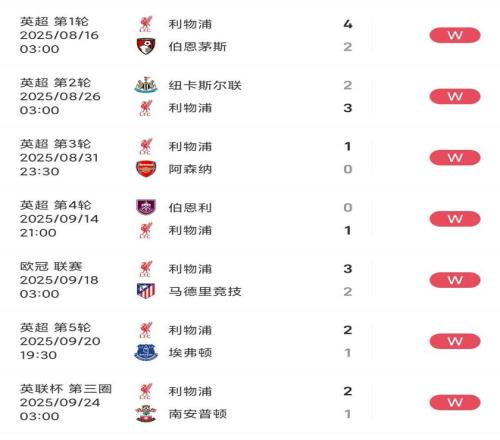 在此前英超第一輪到英聯杯的比賽中,利物浦連續六場比賽都是完成絕殺致勝的一方。