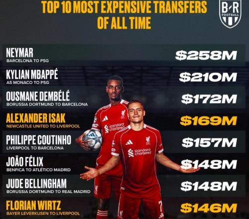 今年夏天,利物浦在轉會市場上搖身一變為“金融巨鱷”。紅軍瘋狂撒錢,砸1.45億歐簽下伊薩克,砸1.25億歐簽下維爾茨,這兩人的轉會費均打破了英超此前的引援轉會費紀錄。外界驚呼英超要提前大結局了。