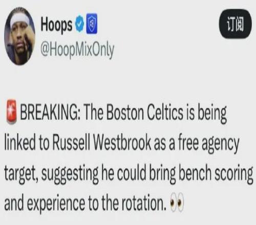 據美媒Hoops報道,凱爾特人有意在自由市場簽下威少。