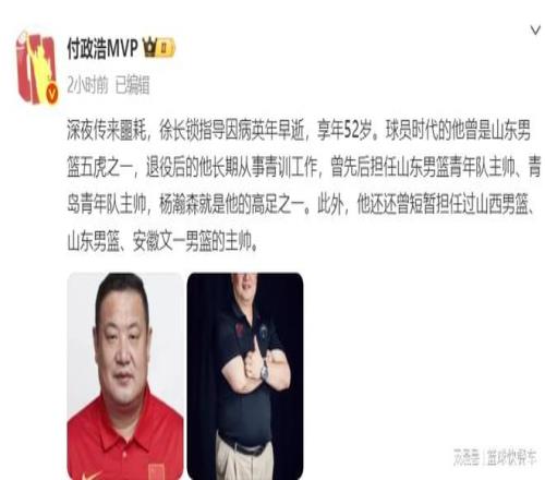 中秋十五月圓之夜,正是闔家歡樂之際。不過,就在中秋深夜,CBA卻迎來一個噩耗。前男籃國手徐長鎖因病去世。作為山東男籃曾經的五虎之一,他曾與鞏曉彬、鞠維鬆等人齊名。而在退役後,徐長鎖依舊堅守在籃球一線,先後在山西、山東等隊執教過。像楊瀚森、丁彥雨航、陶漢林等國手,都是他的得意門生。尤其是楊瀚森,徐長鎖更是他的啟蒙恩師。隻可惜,他再也看不到楊瀚森NBA首秀了。