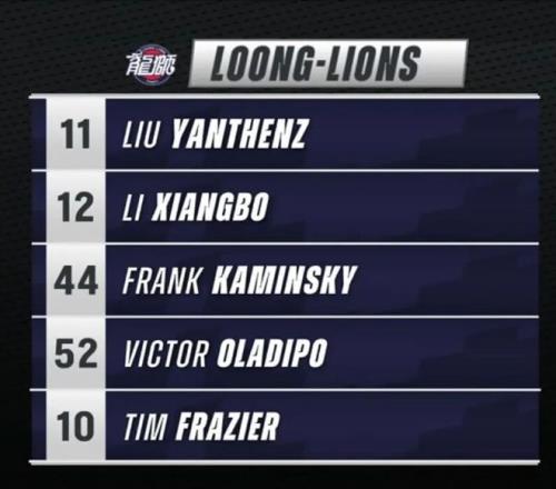 本場比賽,廣州龍獅首發陣容是:卡明斯基、奧拉迪波、弗雷澤、李祥波和劉顏城。