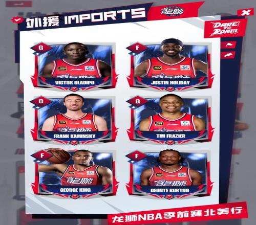在本次NBA季前賽開始前,廣州龍獅俱樂部一口氣簽下奧拉迪波、賈斯汀·霍勒迪、卡明斯基、蒂姆·弗雷澤、喬治·金和德恩特·伯頓等六位臨時外援,在為期半個月的北美行期間,他們參與到廣州龍獅的日常行程和訓練當中,並隨隊征戰即將到來的三場NBA季前賽。他們在爭取留在NBA,同時廣州隊或者其他CBA球隊也可以通過NBA季前賽考察這些球員。