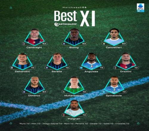 奧爾索利尼(博洛尼亞)7.0分、安古伊薩(那不勒斯)7.5分、巴雷拉(國際米蘭)7.5分、拉紮爾-薩馬爾季奇(亞特蘭大)7.0分