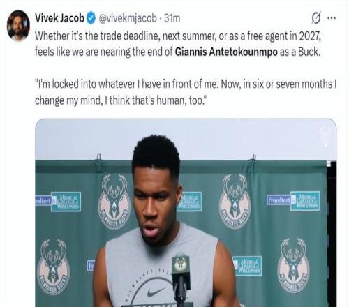 美記Vivek Jacob寫道:從揚尼斯的言論來看,他身位雄鹿球員的生涯正在進入倒計時,無論是交易截止日、明年夏天還有2027年夏天,總之他將離開密爾沃基。