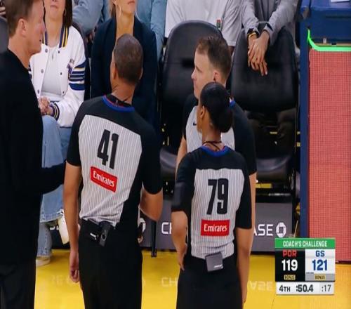 但奇怪的是,離楊瀚森僅有不到兩米之遙的底線裁判,並沒有做出任何表示。反倒是距離相對較遠的裁判認為腳步有問題。