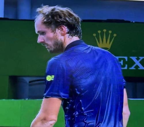 梅德韋傑夫沒打多久就跟落湯雞一樣。
