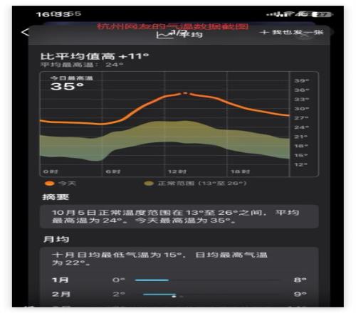 杭州的高溫是比平均值高了11度,這已經很誇張了。