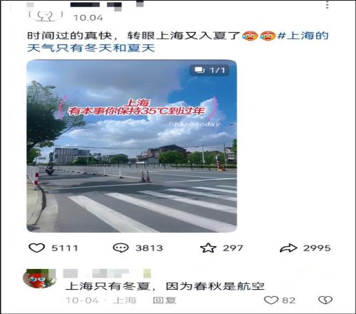 網友都要吐槽:上海隻有冬夏,因為春秋是航空。