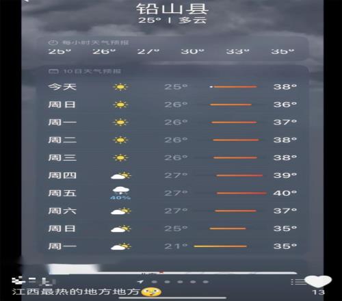 但它依然不是在江西最熱的縣,鉛山縣可能馬上要衝破40度了。