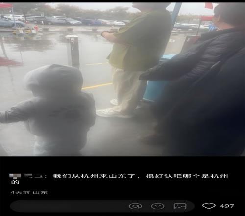 一位從杭州去山東旅遊的網友,發現自己的短袖與別人的羽絨服格外突兀。