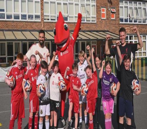雷速體育10月10日宣 近日,利物浦球隊的兩名守門員馬馬爾達什維利和伍德曼與俱樂部吉祥物Mighty Red一同參與了柯比聖勞倫斯小學參加課後足球活動的孩子們的訓練。
