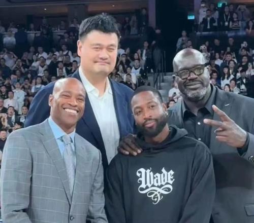 姚明和奧尼爾兩位NBA傳奇巨星,一起在場邊觀戰。