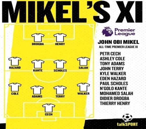 北京時間10月11日,切爾西舊將米克爾在接受talksport采訪時評選出了自己認為的英超最佳十一人陣容。