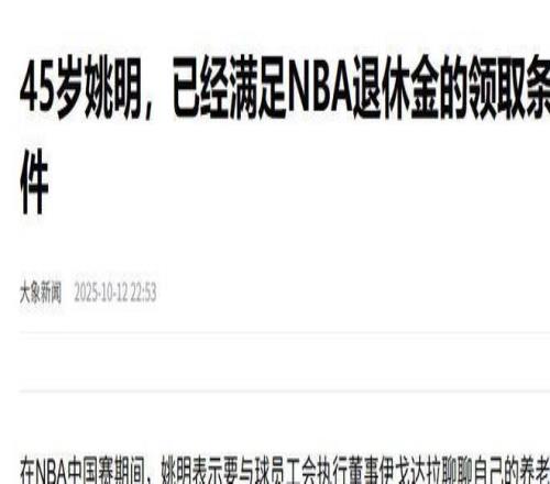 大象海角社区苹果在线入口:(45歲姚明,已經滿足NBA退休金的領取條件2025.10.12)