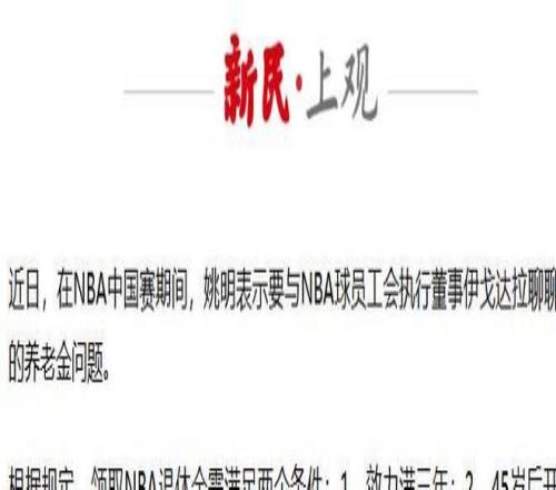 新民晚報:(姚明開始領養老金了2025.10.13)