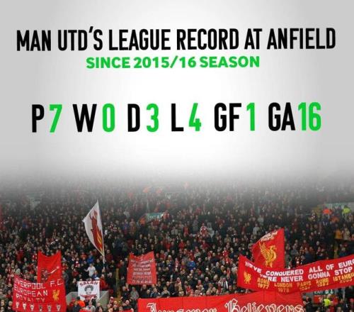 曼聯在1895年首次造訪安菲爾德時,就取得了勝利。不過,99場比賽中,他們隻贏得了26場,26%的勝率算不上高。實際上,紅魔最近一次在那裏取勝,已經是2016年的事情,範加爾帶隊,魯尼製勝,荷蘭教練也被稱為利物浦克星。