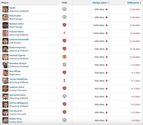 Warning: file_put_contents(./cachefile_yuan/jckjdg.com/cache/a7/07946/71c8a.html): failed to open stream: No such file or directory in /www/wwwroot/NEW8.COM/func.php on line 115 英超身價跌幅榜:羅德裏、福登下跌2000萬歐,維爾茨、薩卡下降1000萬歐_24直播網