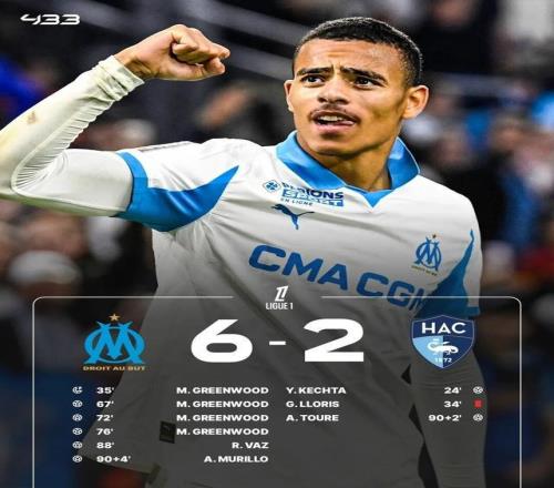法甲第8輪比賽,格林伍德用一場載入史冊的表演:單場狂轟四粒進球,幫助馬賽在主場6-2血洗勒阿弗爾。在羅伯托·德澤爾比的帶領下,馬賽以1分優勢力壓巴黎聖日耳曼,登上法甲榜首,整個法國南部為之沸騰。
