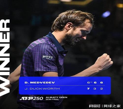 就在剛剛,ATP250阿拉木圖站首場男單半決賽結束了最後的爭奪,2號種子梅德韋傑夫經過三盤激戰,最終以6-7(8)6-3 6-2逆轉從資格賽突圍的澳大利亞黑馬球員達克沃斯,職業生涯第40次闖入巡回賽決賽。這場勝利不僅讓梅德韋傑夫本賽季第二次躋身決賽,也使他成為1990年後出生選手中首位達成ATP巡回賽40次決賽紀錄的球員。