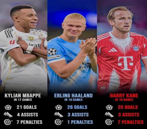 姆巴佩在西甲(13球)也領先第2名阿爾瓦雷斯多達5球,與哈蘭德和凱恩的斷層式領先優勢相當。目前,三大神鋒的瘋狂表現,也讓本賽季歐洲金靴獎的競爭格外激烈。