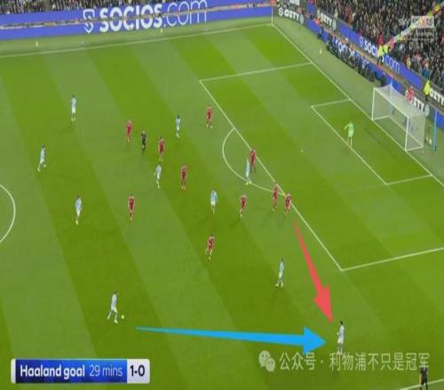 哈蘭德進球的時間是28分30秒。在此前1分鍾,也就是27分30秒左右,利物浦還在前場逼搶,一度將曼城逼到自己的角球區,但曼城球員通過連續短傳配合,輕鬆瓦解了利物浦的前場逼搶,並很快轉入反擊。