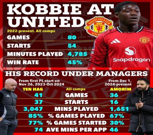 根據阿莫林的安排,梅諾需要與布魯諾·費爾南德斯爭奪343中場的一個位置,而B費不僅是隊長,還是鐵人,他基本不需要休息。另外,阿莫林有理由不選梅諾,數據顯示,本賽季英超聯賽中,梅諾隻有一次出場超過半小時,那是8月與伯恩利的比賽,他下半場替補登場;他上一次上陣是10月25日與布萊頓之戰,出場20分鍾,效果顯著,遺憾的是,不是阿莫林想要的效果。