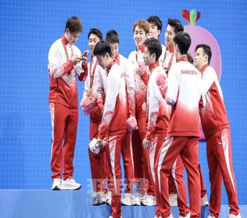 廣東隊在昨天早上的決3、4名附加賽中以3比2戰勝湖南隊,收獲銅牌,這三支隊伍共同在今天淩晨進行的頒獎儀式上登上領獎台。