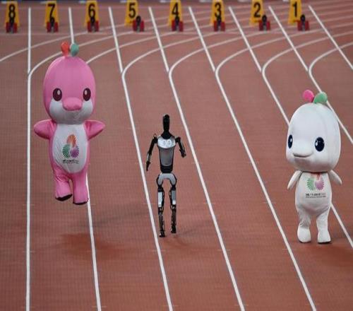 發令槍響後,三名“運動員”開始“奔跑”。機器人邁著穩健的步伐向前,兩隻吉祥物一邊扭動著胖胖的身軀前進,一邊蹦蹦跳跳,還不時回頭“挑釁”機器人,逗笑了現場觀眾。而Walker不為所動,依舊按照自己的速度和節奏奔跑。