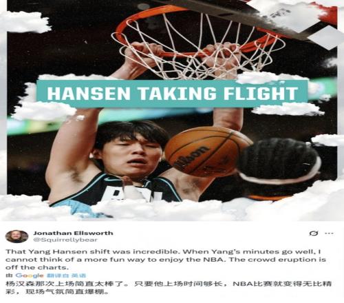 而此時再看看美國網友們對楊瀚森的瘋狂稱讚,他們已經炸了鍋了:“楊瀚森上場之後簡直太棒了,他隻要上場時間夠長,NBA的比賽就會很精彩,現場的氣氛就會因他而沸騰。”、“不管其他人怎麽說,但是楊瀚森展現出了我想從他身上看到的東西,有亮點和優勢,起碼他有足夠的上場時間了,有進球,有拚搶,有傳球意識,還有一些成功之處,最後起碼他有天賦。”