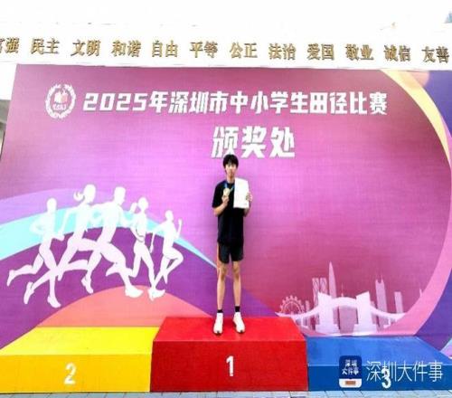 南都記者獲悉,近日, 深圳市中小學生田徑比賽在深圳市第七高級中學激烈上演。在初中男子400米決賽中,坪山實驗學校石文建同學以50.76秒優異成績勇奪桂冠,這一成績是賽事近三年來的最佳表現,再次刷新坪山學子在該項目上的曆史紀錄!
