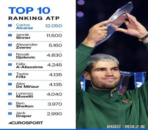 前三的人員沒有變化,隻是阿卡從第三一躍至首位,而辛納和茲維列夫則分別下滑一位。他們三人已經連續幾年攜手位列前三,也是一道獨特的風景線。