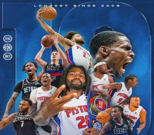 賽季至今,活塞13勝2負,最近打出了11連勝,高居東部第一,跟西部第一的雷霆遙相呼應。