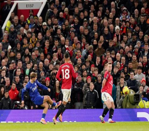 英超第12輪客場挑戰曼聯的比賽中,迪尤斯伯裏-霍爾的進球為10人應戰的埃弗頓首開記錄。