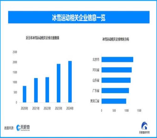 從企業注冊數量趨勢來看,近五年間,冰雪運動相關企業的注冊數量呈現出逐年增長的態勢,並在2024年達到頂峰。天眼查股東信息和股權全景穿透圖顯示,這些企業背後既有專業投資機構布局,也不乏跨界資本入場,形成多元化的投資格局。