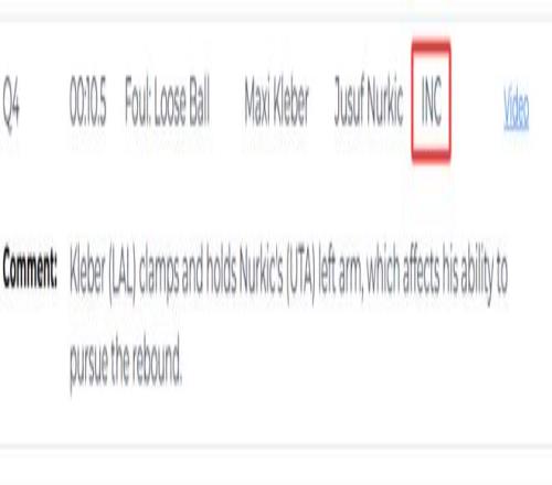 第一次漏判發生在距離比賽結束還有10.5秒,湖人球員克勒貝爾夾住並按住爵士球員努爾基奇的左臂,影響其爭搶籃板的能力。這是一次漏吹的搶籃板犯規,湖人獲利,爵士吃虧。