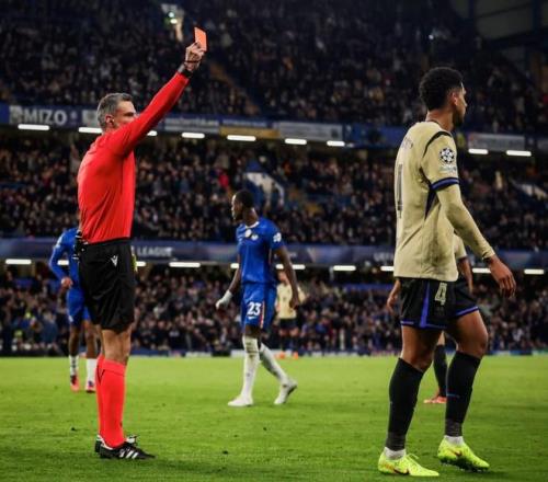 北京時間11月26日,在歐冠聯賽階段第5輪的比賽中,巴塞羅那上半時過後客場0-1落後於切爾西,更為不利的是他們的場上隊長阿勞霍在第44分鍾兩黃變一紅被罰下。