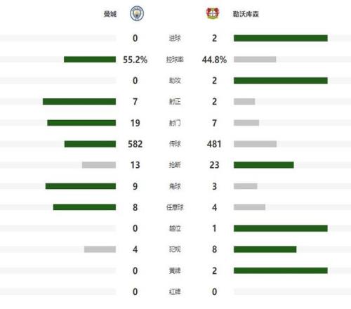 第65分鍾瓜迪奧拉再次做出換人調整,哈蘭德和謝爾基披掛上陣,意味著藍月軍團要在主場發起最後的反撲,第71分鍾哈蘭德禁區內小角度打門被封堵,2分鍾之後挪威魔人點球點附近的抽射又放了高射炮,連續浪費機會的曼城,隻能眼睜睜看著勒沃庫森從自己的主場帶走了勝利。