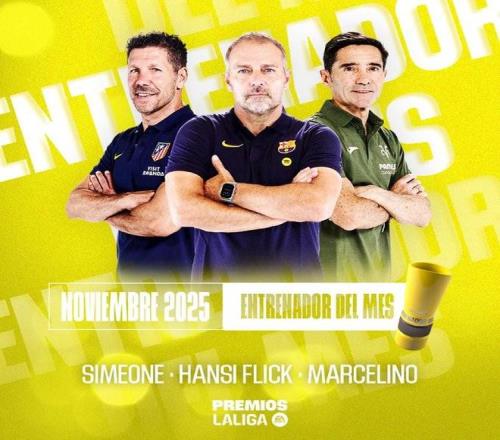 官方消息,西甲11月最佳主教練候選名單公布,分別是弗裏克、西蒙尼和馬塞利諾。