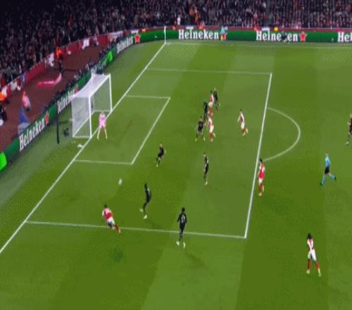 第22分鍾,薩卡右側角球傳中,廷貝爾甩頭攻門得手,阿森納率先破門,1-0!