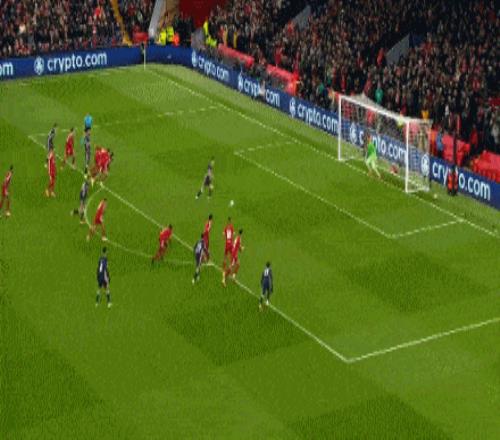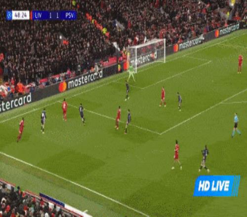 第4分鍾,埃因霍溫角球機會罰向禁區,範戴克“攔網”動作將球攔下,主裁判罰點球,佩裏西奇主罰命中,埃因霍溫1-0利物浦。
